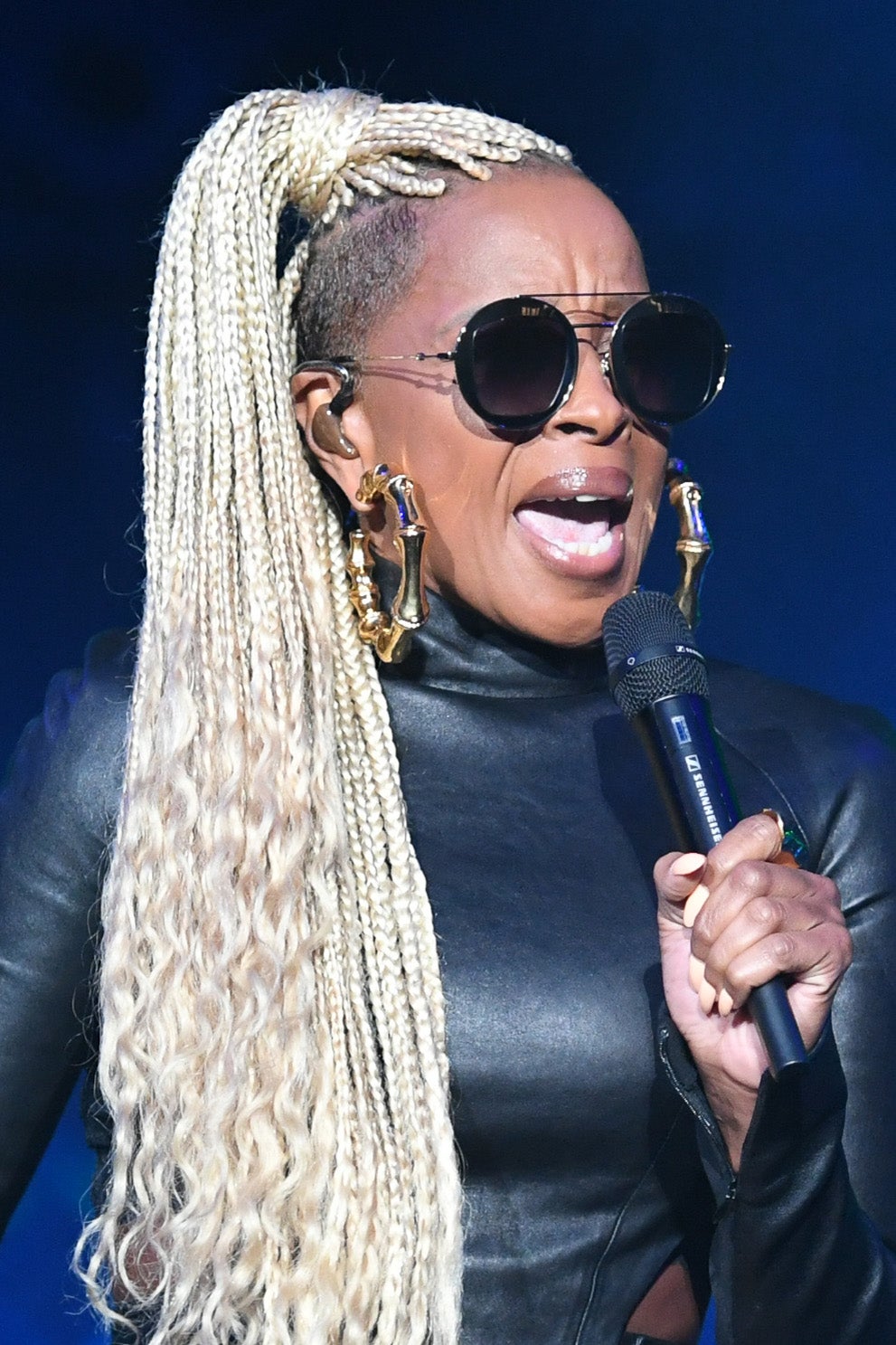 Mary J Blige sports blonde braids and an undercut at the 2017 Essence Music Festival.