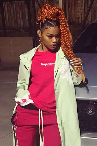 Teyana is known for her head-turning mane moments and we’ve been completely captivated by her latest do. In a photo recently posted to her Instagram, Teyana is seen rocking chunky orange braids alongside her daughter Junie’s godmother, Monica.