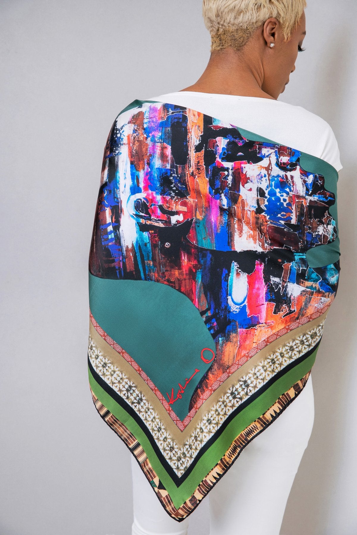 African Head Painting Scarf, $135
