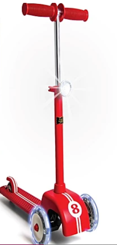 Super cute! And parents love the built-in break and headlight. Reviewers also say it’s sturdy and easy to spot. Was $139.99, now $55.99. FAO Schwarz Kids LED Light-Up Spinner 3-Wheel Scooter