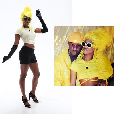“Aaliyah is the OG cool girl: she rocked baggy men’s jeans and bodycon dresses with equal aplomb and was a trendsetter far ahead of her time (ombré hair? Defined brows? Aaliyah mastered those way back in the ’90s.) I vividly remember the first time I heard ‘Are You That Somebody?’ and I remember how enchanted I was with her crop tops, long beautiful hair, and fluidly effortless dancing. I chose to evoke Aaliyah for Halloween because a) she’s probably my favorite artist of all time, b) her look is timeless while also impossible to miss and c) I found my aunt’s old Tommy Hilfiger tube top and couldn’t not evoke the princess of R&B!”