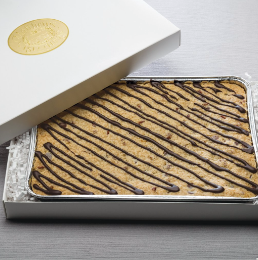Thank him for all he’s done in your life by satisfying his sweet tooth with these blondie bars that are drizzled with chocolate bourbon sauce. Yum!