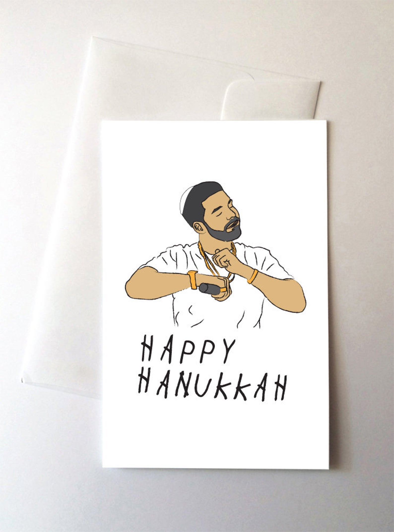 Get it popping for Hanukkah in classic Drake fashion with this Black greeting card.