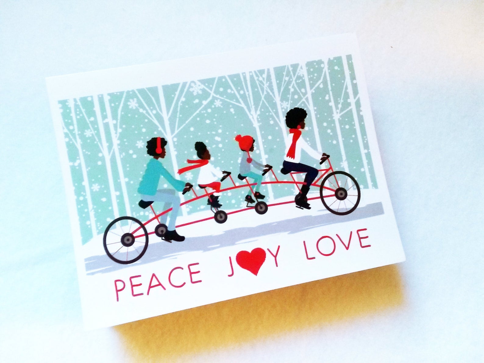 Peace + Love + Joy African-American Holiday Card, $4
