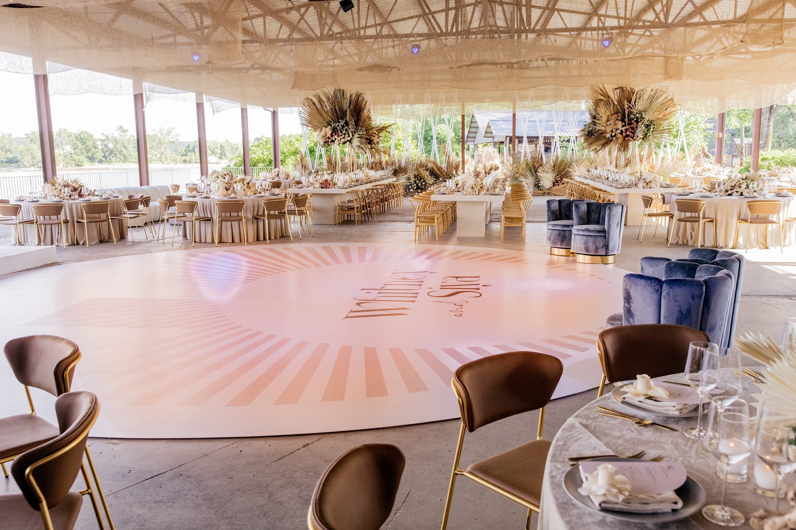 They would eventually grow as a couple, sharing a home together and according to Whitney, doing “all of these married people things without married people documents.” After some discussion in 2020, they decided that by 2022 they would get married, but she had no idea that Siya had already started preparing to propose. He went to a minority woman-owned jeweler to design a ring for her, which he drew by hand, and got all their friends and family involved in the proposal in a clever way amid the pandemic (more on that shortly!). Nearly two years later, on the weekend of June 11, 2022, the couple said “I do” in grand fashion, celebrating with a three-day event called Camp Madikane (which is Siya’s surname). It was a play on the sleepaway camps of childhood, filled with food, fun and opportunities for people to make connections. It involved a welcome event with stilt walkers, a steel drum band and flamingo girls, as well as a gospel brunch on the final day. Sandwiched in between was the beautiful wedding ceremony. It was attended by loved ones from all over the world, brought together at the Hutton Brickyards in Kingston, New York, two hours away from the city.