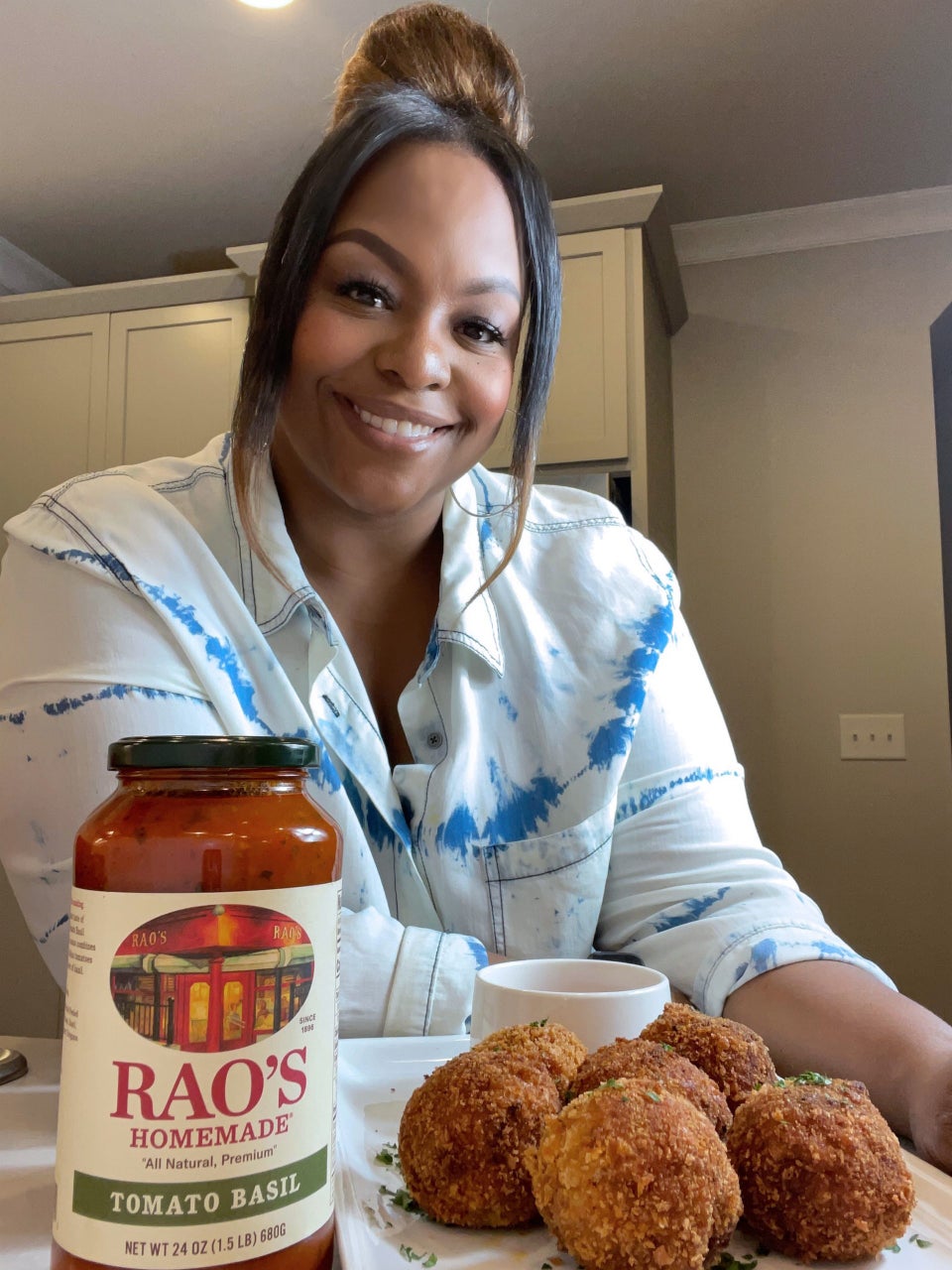 “I was so excited to partner with Rao’s Homemade because my background is in social services,” she says. “I actually worked in social services in New Jersey. And that’s where Rao’s Homemade is headquartered out of Montclair. And so after I worked there, I stepped out of that and decided to continue with cooking, but I still work in social work all the time, even to this day.”