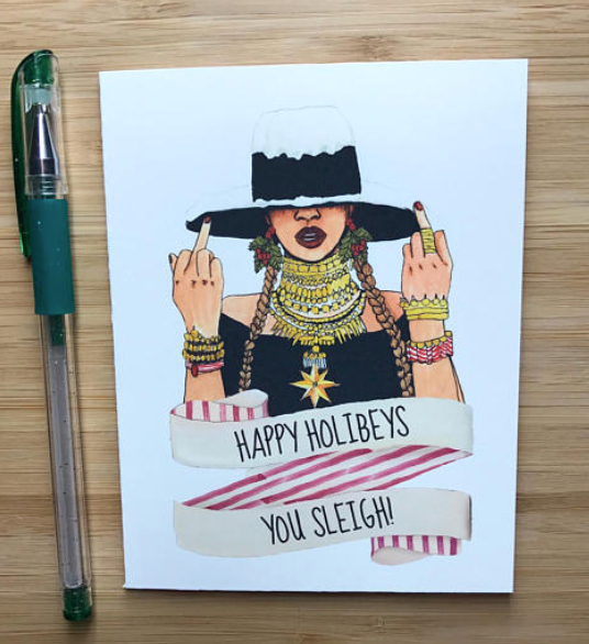 Home • Lifestyle 14 Black Christmas Cards On Etsy That Say Exactly What You Want Them To By Lauren Porter · Updated October 24, 2020 Getting your Trinity Audio player ready… ‘Tis the season to give great cards that say exactly what you want them to. Start with these. 01 Frostie the FRO man Who said Frostie the Snowman couldn’t rock his baby hairs and afro?! available at Etsy $4.46 Buy! 02 Mariah Carey Christmas Card Every year we are eternally grateful that Christmas queen Mariah Carey created the greatest holiday jingle of all time with “All I Want For Christmas Is You” and this card is proof. available at Etsy $5.00 Buy! 03 Beyoncé Christmas Card Come on girl, sleigh the holiday! available at Etsy $4.00 Buy! 04 Kendrick Lamar Christmas Card Damn. This card is everything! available at Etsy $4.49 Buy! 05 Mix and Match Christmas Card Set May the Black Girl Magic and the Black Boy Joy of your family and friends be shared abundantly with this card. available at Etsy $10.44 for a set of 4 Buy! 06 Rihanna Christmas Card When it comes to wanting your gifts on time, there’s no holding back. Just as Rihanna. available at Etsy $3.61 Buy! 07 Ho! Ho! Ho! Christmas Card We think this card just says it all! available at Etsy $3.48 Buy! 08 Beyoncé Christmas Card Leave it to the queen Bey to remind us to get into formation even during the holidays! available at Etsy $4.00 Buy! 09 Chance The Rapper Christmas Card Chance the Rapper wants you to have a wonderful Christmas lil’ mama! available at Etsy $4.50 Buy! 10 “Happy Holidays” Christmas Card Sometimes all it takes a little simply holiday cheer and this card will do the trick! available at Etsy $4.00 Buy! 11 Drake Christmas Card No one makes our holiday hotline bling like Drake. available at Etsy $4.49 Buy! 12 DJ Khaled Christmas Card Giving this card, you’ll be smart, you’ll be loyal and you’ll be very, very important! available at Etsy $4.00 Buy! 13 Fresh Prince Christmas Card Make this Christmas as fresh as the Fresh Prince of Bel-Air would want it to be! available at Etsy $4.00 Buy! 14 Beyoncé Christmas Card You can jingle all the bey through the holiday season with this card! available at Etsy $4.00 Buy! TOPICS: Gift Guides Shopping