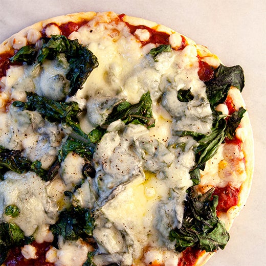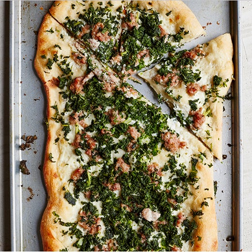 Food & Wine delivers a quick and easy cheese pizza variation with a little Swiss chard and hominy.