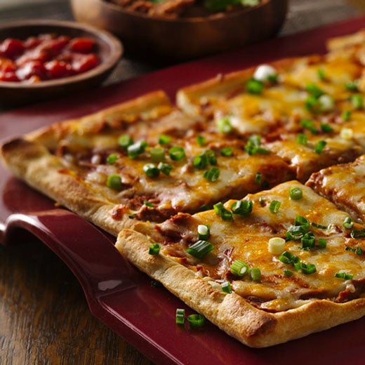 Pillsbury mixes Old El Paso™ refried beans, Old El Paso™ red enchilada sauce and a shredded Mexican cheese blend to create the perfect twist to the traditional cheese pizza.