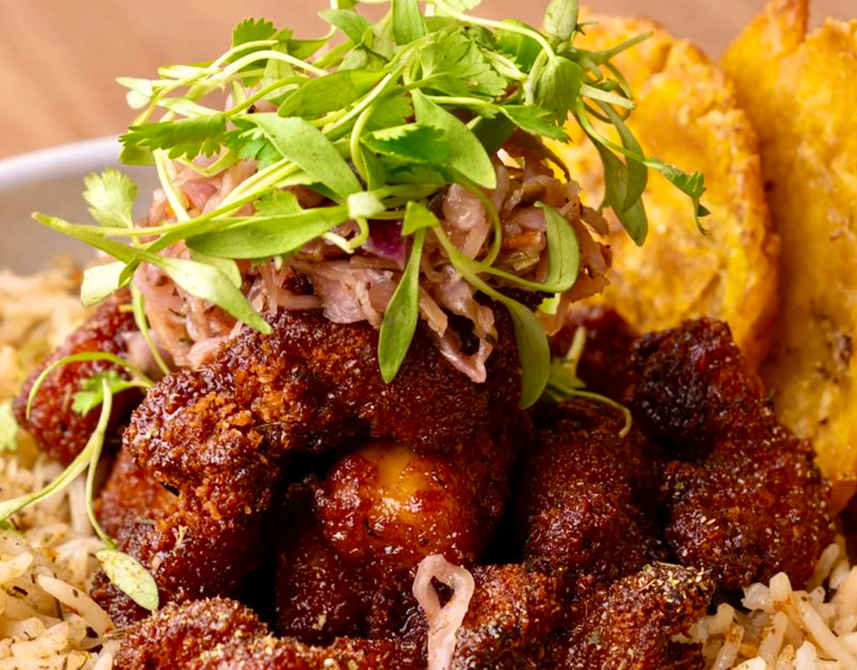Experience delicious Caribbean food at Manjay Restaurant in the Wynwood District. Haitian restauranteur Christian Dominique tracks his love for cuisine back to his maternal grandmom, and her essence is manifested in Dominique’s dishes. Must-eat starters include Caribbean Conch Fritters and Toofay (Haitian Ratatouille). The foods of choice are the Fried Chicken Sandwich and Vegan Roti. Sweet tooth addicts love the Benyen; a Banana Beignet served with coconut cream cheese, crème anglaise, and toasted coconut flakes.