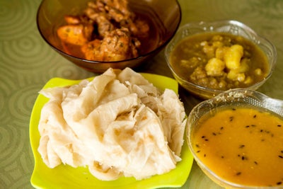 “In Trinidad, ask around for the best roti shop, and everyone will give you a different answer,” Mooking says about the staple dish, which is often served in two styles: wrapped or buss-up-shut. “Trinidadians have been known to go to the other side of the island just to hit up their favorite roti shop.”