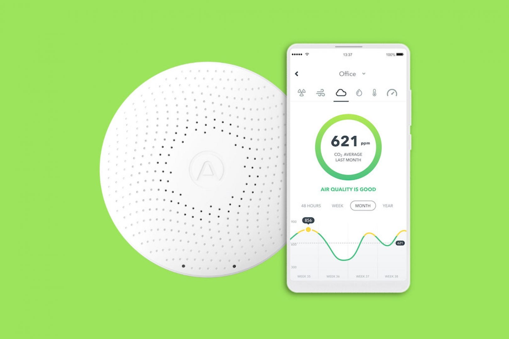 Airthings Wave Plus is the perfect product to take control of the air you’re breathing. Connecting to user’s smartphones via Bluetooth and monitoring critical indoor air quality components such as airborne chemicals (TVOCs), carbon dioxide (CO2), radon, air pressure, temperature, and humidity, users can view an in-depth analysis of the air in their home and receive notifications when air quality reaches dangerous levels.