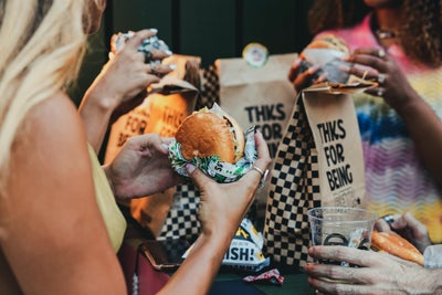 Located in the SoHo neighborhood of Manhattan at the entrance to the Holland Tunnel, the Black-owned, late-night burger spot welcomes customers to chow down on plant-based burgers, fries, chili, shakes and oat milk-based soft serve. Dining is walk-up style, with sitting and standing tables available outdoors.