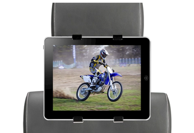 If you have little ones or even just want to help a back seat passenger easily enjoy watching shows, get this rear seat headrest mount. It apparently works with all tablets and iPads and has dimensions of 5.0 Inches (H) x 5.5 Inches (W) x 10.0 Inches (D).