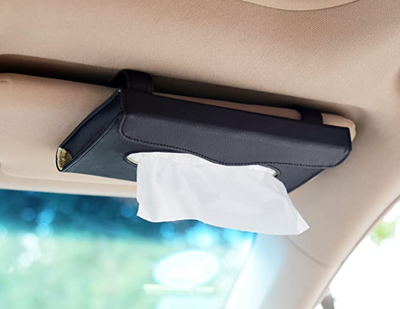 This car tissue holder makes life easier when you need to blow your nose or wipe your hands. You can reach up instead of scrambling around the car looking for tissue and trying to get it out of the box. It has a nice sleek polyurethane leather exterior and doesn’t take up much space in your car.
