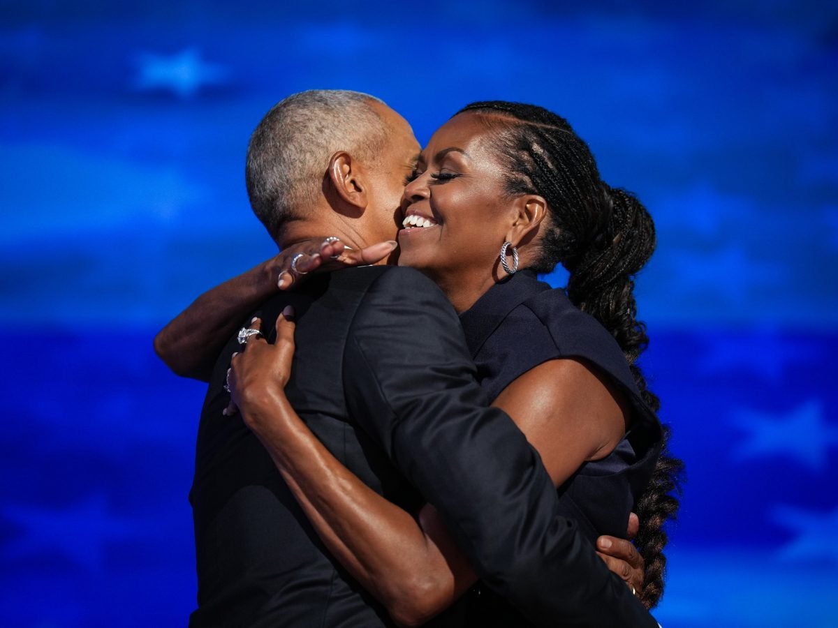 “There hasn’t been one moment in our marriage where I thought about quittin’ my man. And we’ve had some really hard times,” Michelle Obama said. “We have had a lot of fun times, a lot of adventures, and I have become a better person because of the man I’m married to.”