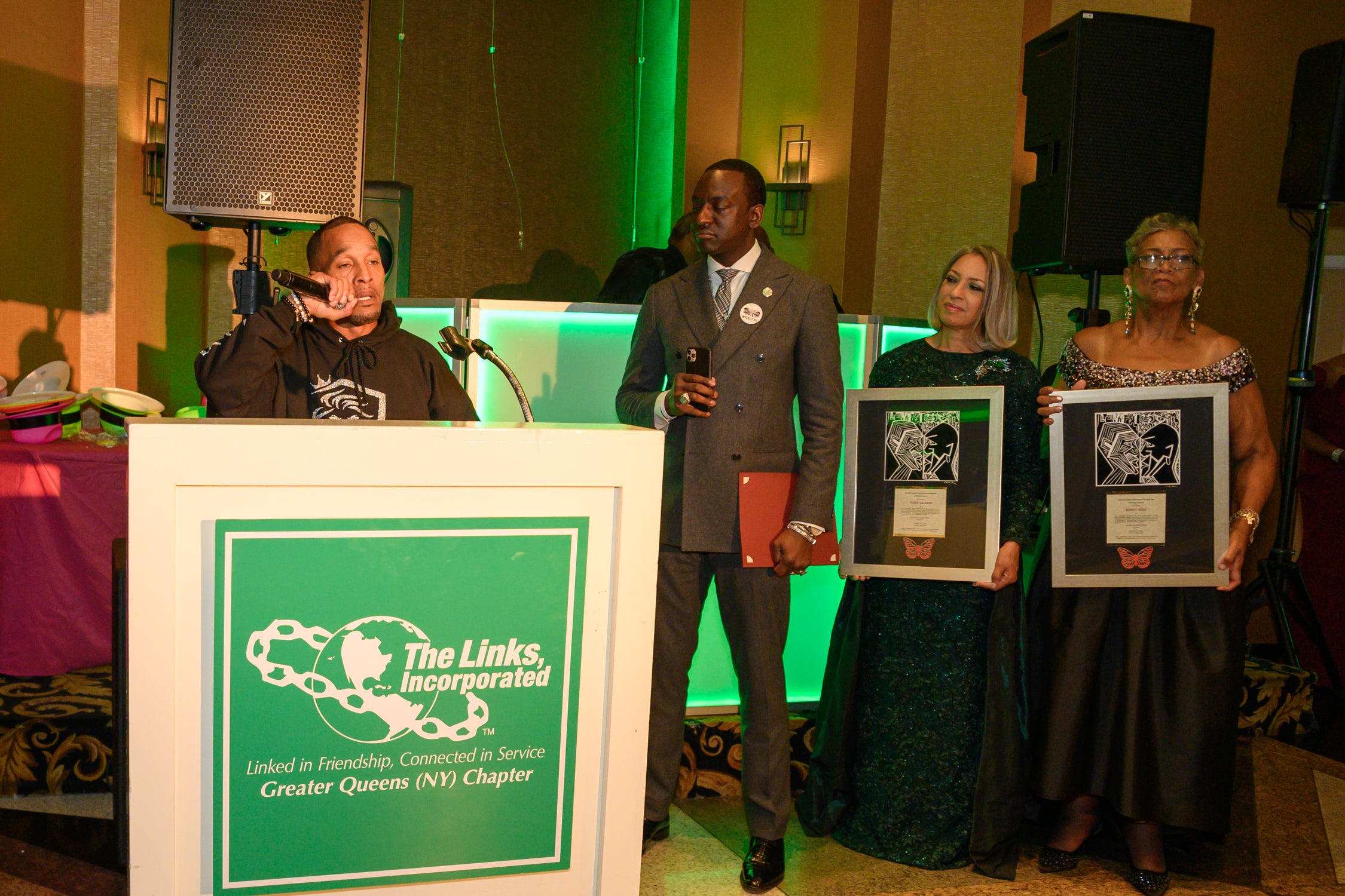 Keeping with the night’s theme “Leading with Excellence, Serving Greater Queens with Grace,” Dr. Kimberly Jeffries Leonard, the National President of The Links Incorporated and Jacqueline Arrington-Pinkard, President of Greater Queens Chapter of The Links, Incorporated had the honor of presenting “The Exonerated 5”, (previously known as “The Central Park 5”), with the chapter’s inaugural “Phoenix Award.” Dr. Yusef Salaam and Korey Wise accepted the award on behalf of the group. This year’s scholarship recipient, Dane Allen, a freshman at Cornell University, received the Murial E. Baldwin Memorial Scholarship for his outstanding academic achievements.