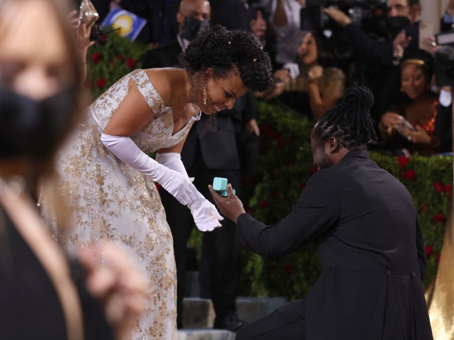 It usually takes the right, show-stopping fashion statement to get everyone’s attention at the Met Gala, but one power couple managed to get all eyes on them on Monday night with an epic proposal.