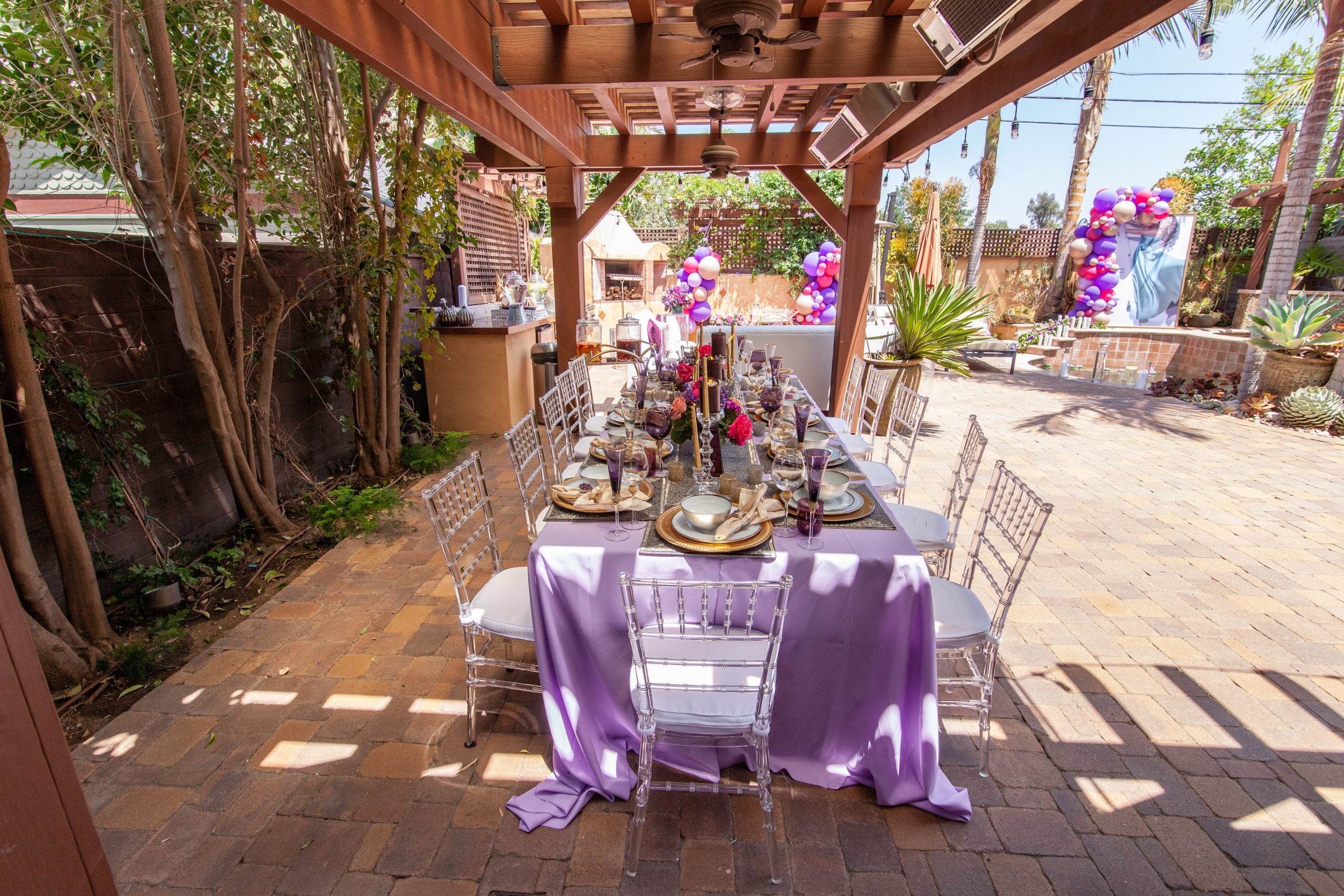 It was a purple affair, which is Shepherd’s favorite color, with purple flowers and decor all around. Guests were treated to massages from Manly Handz (handsome men giving out much-needed spa experiences? Sign us up!), as well as a delicious meal from Chef Ian Desdune, who offered up a menu both meat lovers and vegans could appreciate. He just so happens to be the son of Academy Award-winning actress Regina King, by the way.