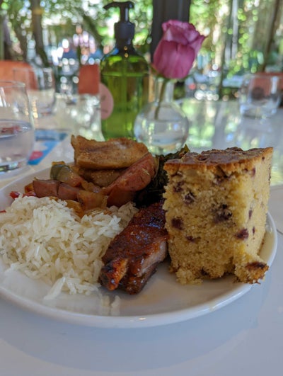 Saturday was my last full day, so I had to make the most of it. I started the day at the Williams Family Brunch thrown by Pharrell Williams and his father Pharaoh, a self-taught chef. It took place at the popular Swan restaurant in Miami’s swanky Design District. After cheesing my way through a meeting with the super producer (my jaws still hurt from smiling so hard), I dived into the fare curated by Pharaoh. There was no wine this time, but a couple of options of delicious cocktails. I paired one with a plate that included ribs (just one), blueberry cornbread, sausage with peppers (I had mine atop rice), a piece of fried catfish and collard greens. It wasn’t the usual food I would order at brunch time, but no complaints from me! The food was delicious.
