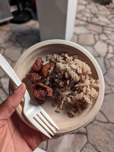 To end the night, I took the last empty space in my stomach and traveled to Hallandale Beach. There, I attended the Hallandale Beach Food & Groove: A Wine, Food and Art Experience event. Escorted by Dr. Lisa Davis, who works with the SBWFF to address gaps in underrepresentation and helped plan the event, I had the chance to try fare from many Black and brown chefs.