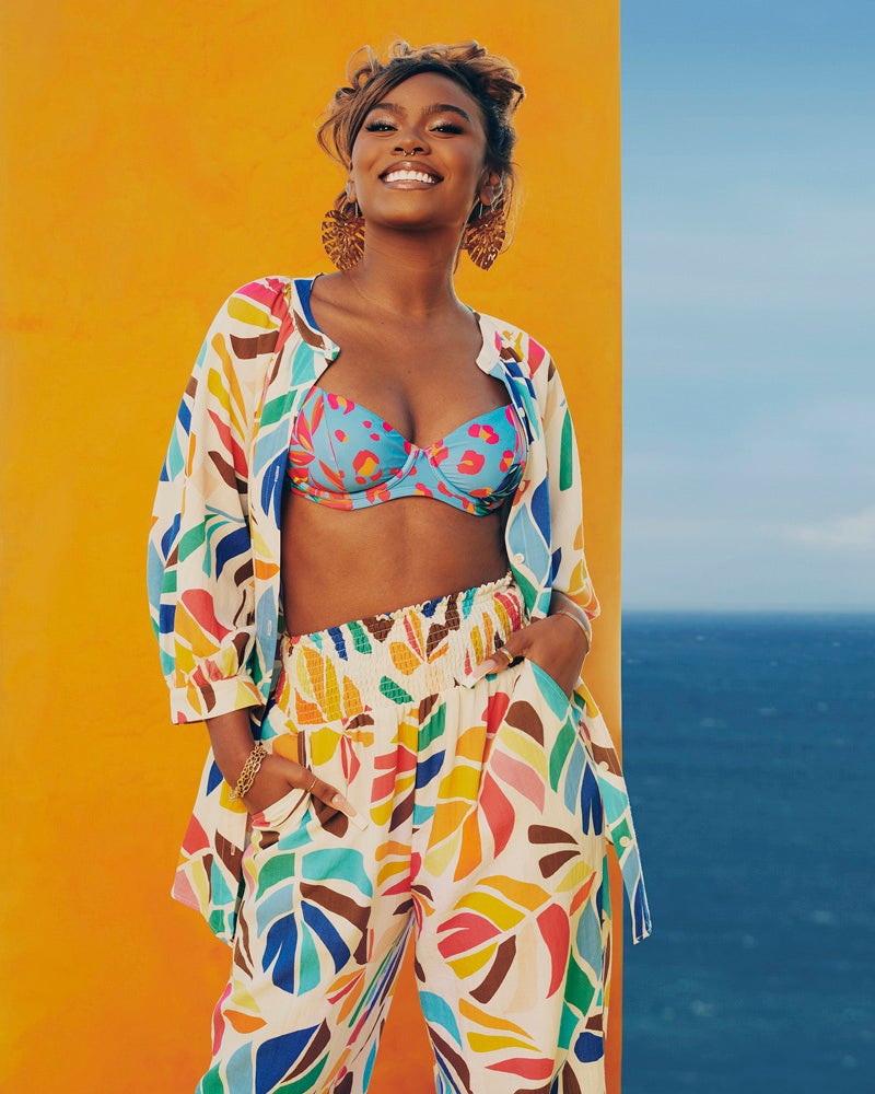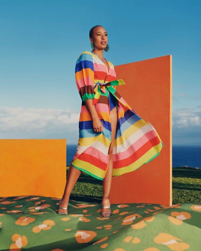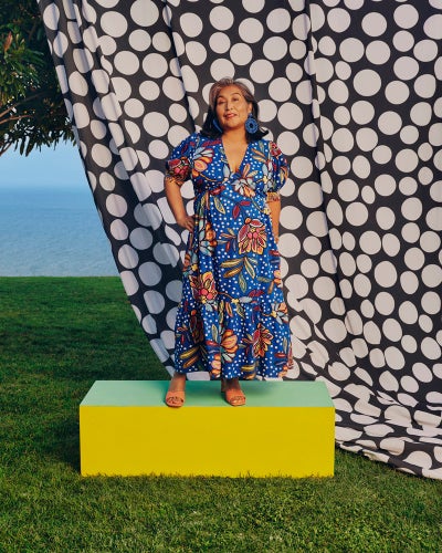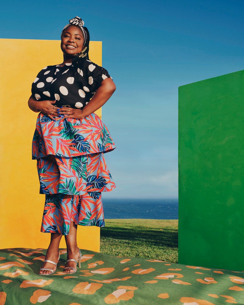 “For me, I always like to dress how I want to feel,” she says. “Because some days you get up and you may not feel the best, but you want to feel better. So my mom used to say, ‘Girl, get dressed up, put on your colors and your patterns and things.’ And that’s why I have tons of color, tons of patterns [in the collection].”