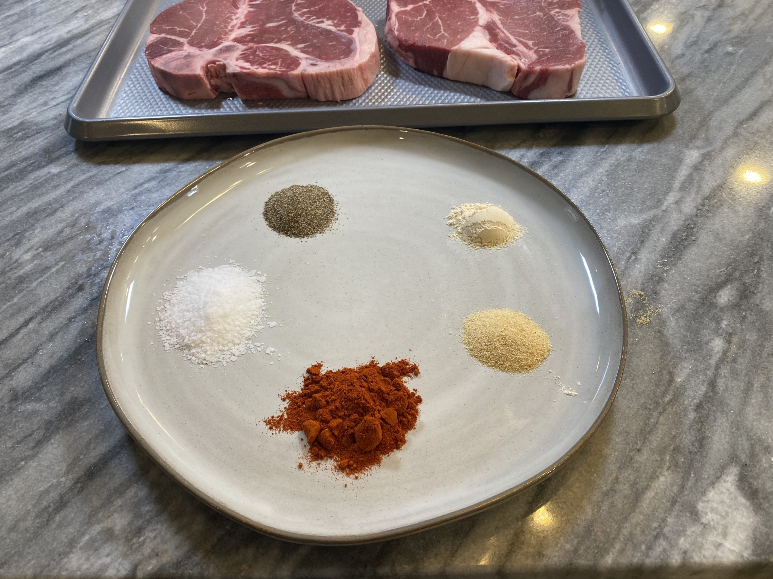 1.) Pat steak dry with paper towels; season liberally with African Spice Rub and allow to come to room temperature, about 45 minutes.