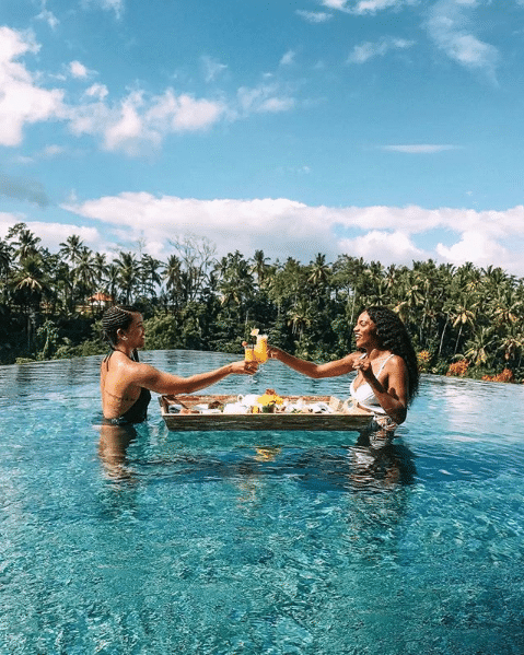 Friends who travel together, stay together, just ask Asiyami Gold. The most famous place to get your floating breakfast on is the Ayana Resort and Spa, but many other accommodations on the island offer a more budget friendly version of the experience.