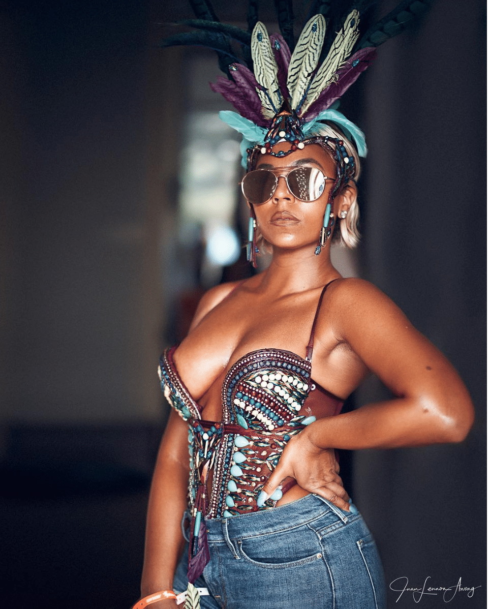 Experiencing “mas” in Trinidad as a first-timer can often be overwhelming, but the songstress handled it with ease. Oh and…that body! Let’s just say we’re all dropping the doubles and picking up the healthy meals so we can look as good as Ashanti for carnival in 2020.
