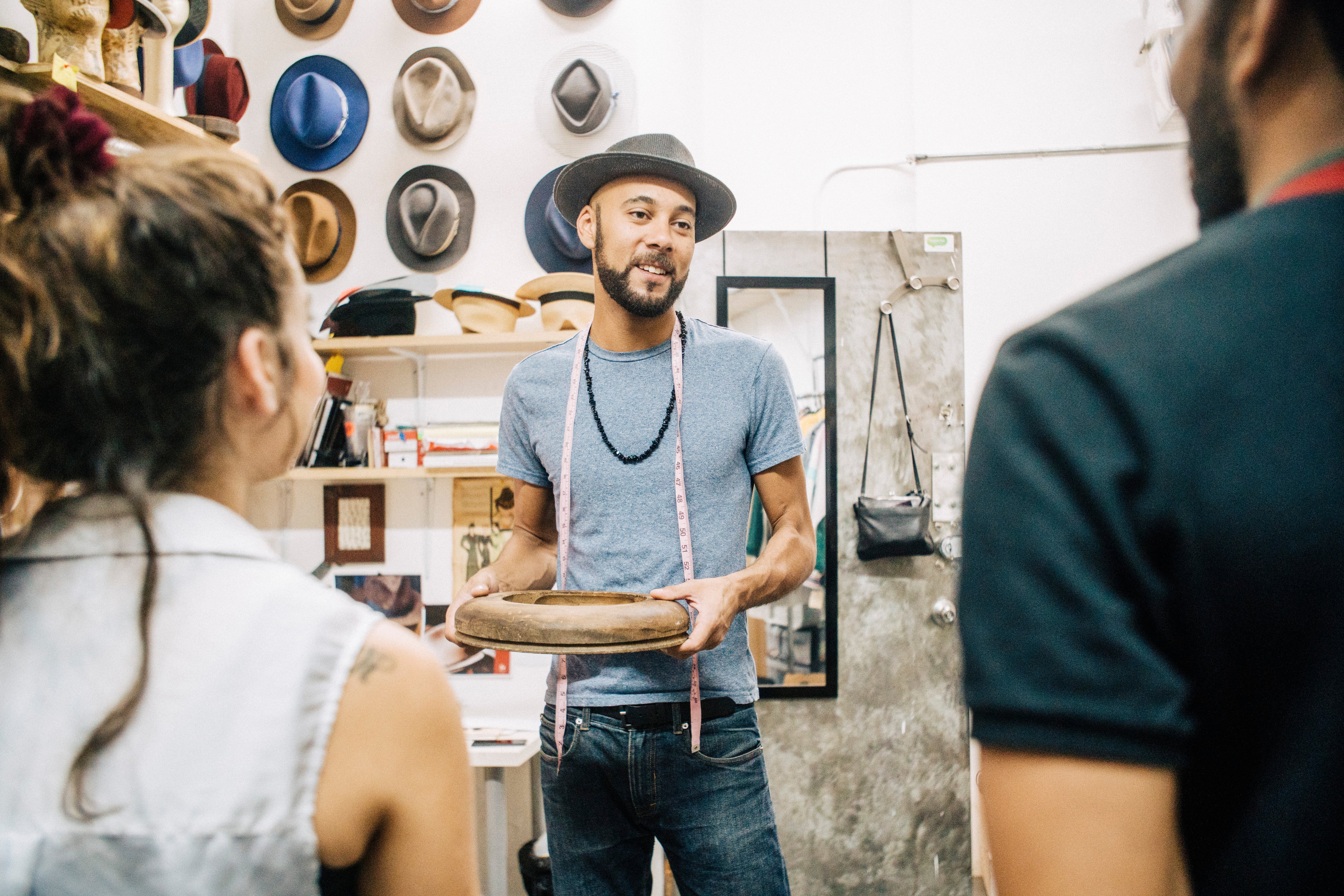 I think most will enjoy the hands-on, interactive aspect of it. One part of the experience involves the group being in my shop and learning about the history of the craft, our business and where it’s going. They’re surrounded by not only product samples but also the tools that made them. We walk through the process of making a hat, and while this is happening, certain steps and techniques are executed by the guest. I believe this is important because the art of the hand-made has been making a strong resurgence and within our community, we need to be a part of this movement. There has been recent talk about there not being enough Black fashion designers or any at all that is on the level of any leading fashion house or designer. I believe not only does this need to change but it needs to be taken a step further meaning designers can be craftsmen/women as well, not just creative directors.