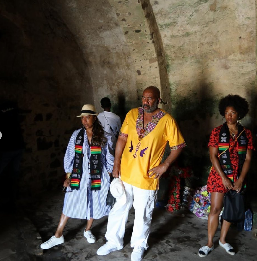 During a visit to the Elmina Slave Trade Castle, walking the path of their ancestors through the castle and out of the “Door of No Return,” took a deep emotional toll on the Harvey clan as the weight of history fell heavy on their hearts and spirits. In a video shared to Instagram, Steve Harvey spoke about his experience and encouraged others to honor our ancestors by returning to Ghana.