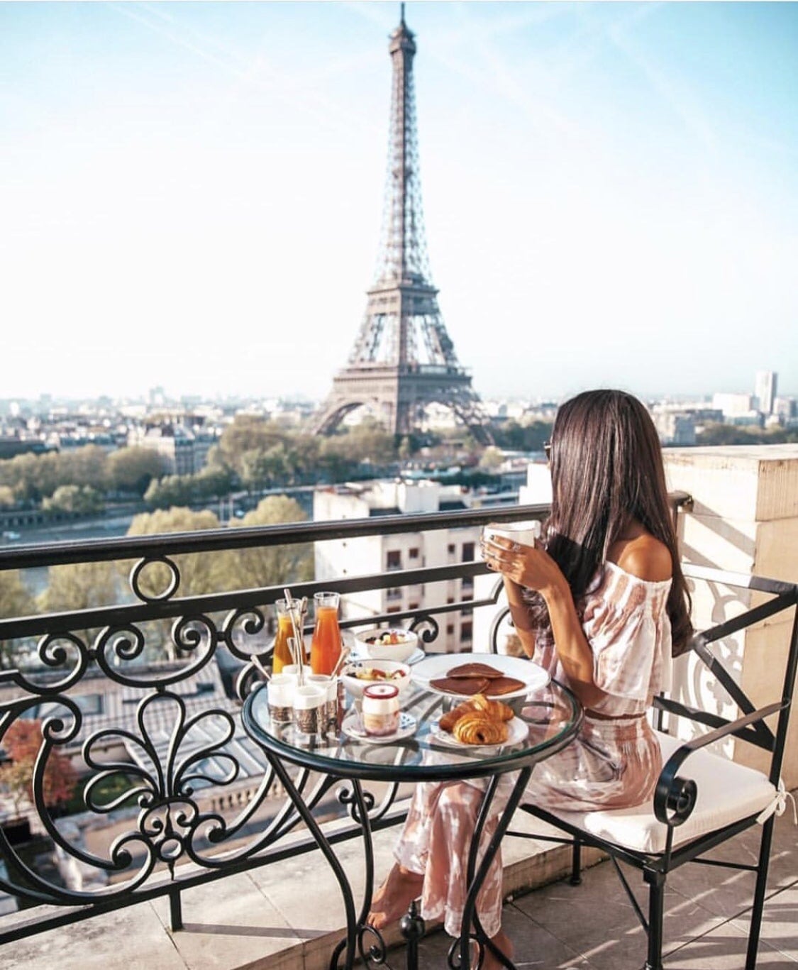 You don’t need to stay in a hotel super close to the Eiffel Tower to recreate this moment. Choose a hotel a bit further out like the Hôtel San Régis or the Peninsula Paris to take in the best views of the famous landmark.
