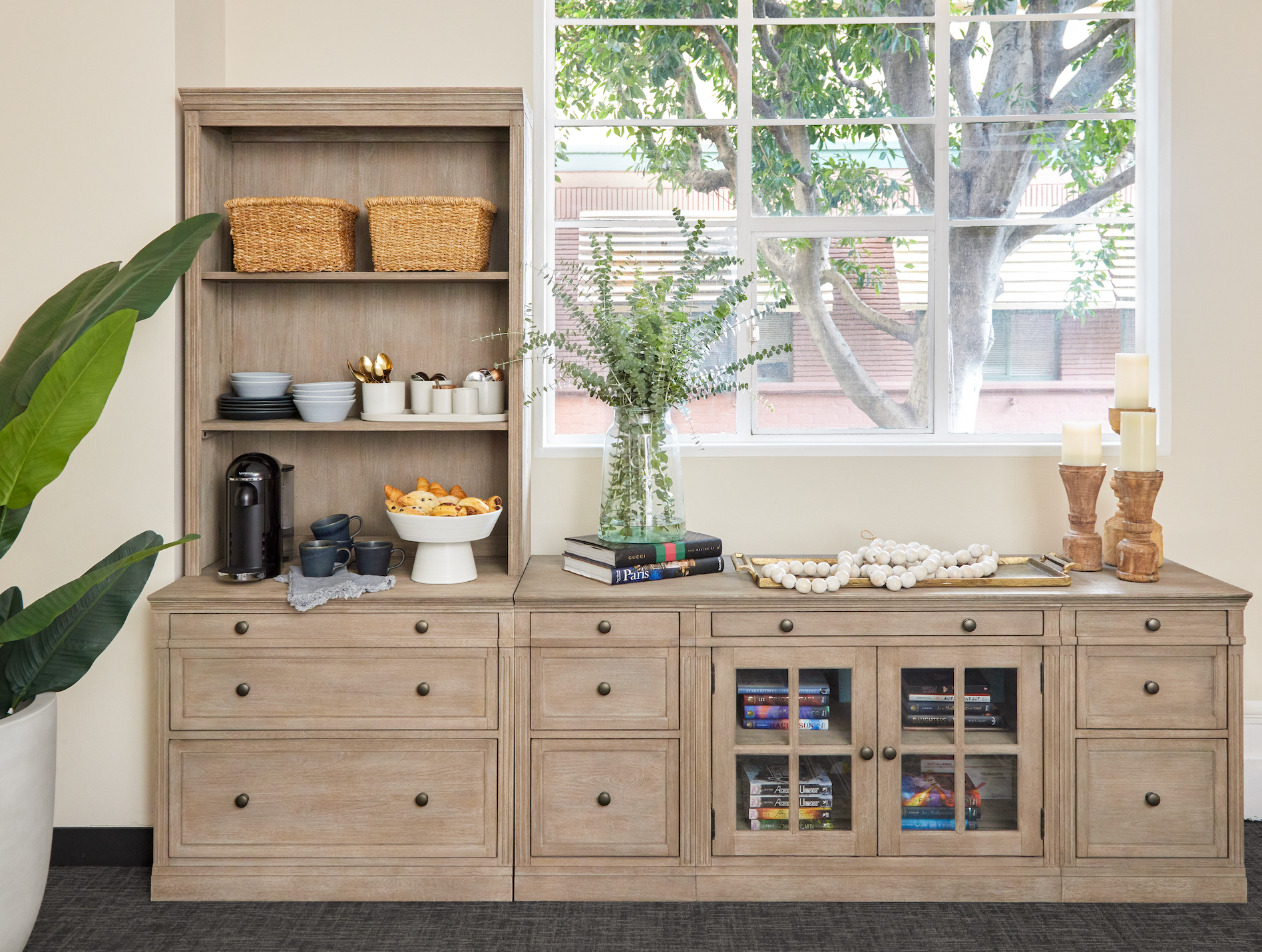 “When we got this office, I imagined a beautiful, functional, and cozy space where we could really get organized and focused,” says Shahidi. “I also wanted it to serve as a space for my team and my family to gather, get inspired, and brainstorm our next projects. The Pottery Barn Design Crew was able to perfectly bring this vision to life.”