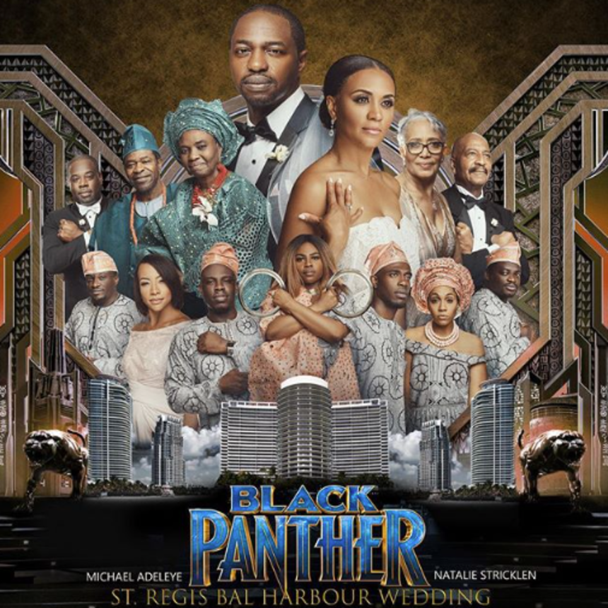 Spotted on Instagram, one bride and groom, Natalie and Michael Adeleye, loved the Ryan Coogler-directed movie so much they had their wedding photos recreated to mimic the Black Panther poster.