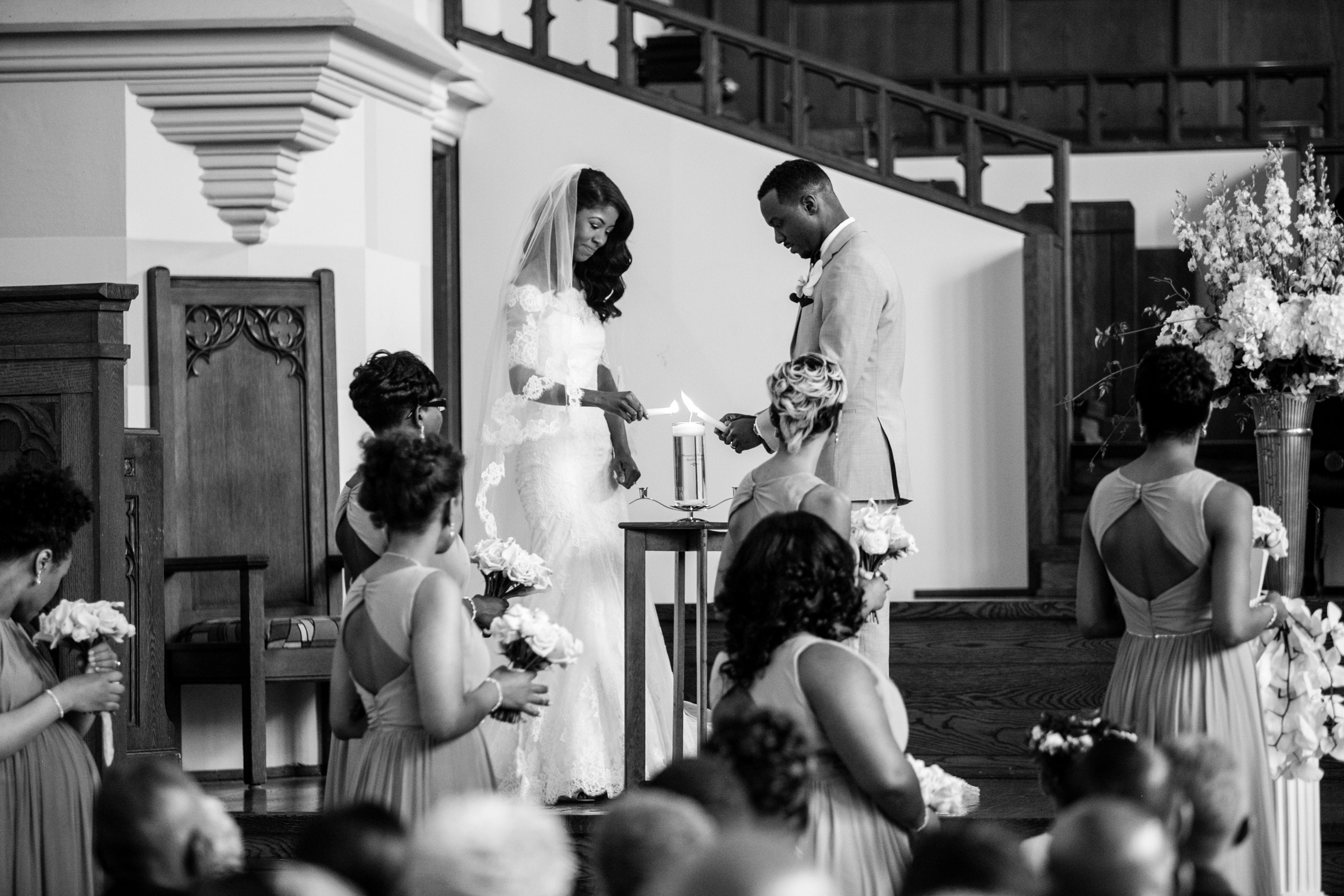 The bride and groom met in high school and were friends until their senior year. They dated for 6 years before Harrison popped the question to Shamara on a hot and humid day in August of 2014. She wasn’t expecting his proposal but as soon as he asked for her hand in marriage, she couldn’t help but say “yes!”