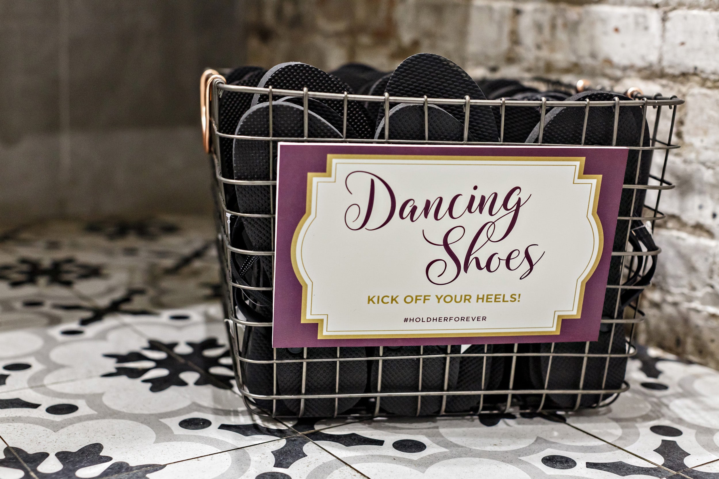 “We provided flip flops for ladies because we didn’t want their heels to prevent them from hitting the dance floor,” shared the bride. “We picked this tip up from a wedding we went to a few years ago. It’s pretty cheap and genius if you want to ensure a turned up reception.”