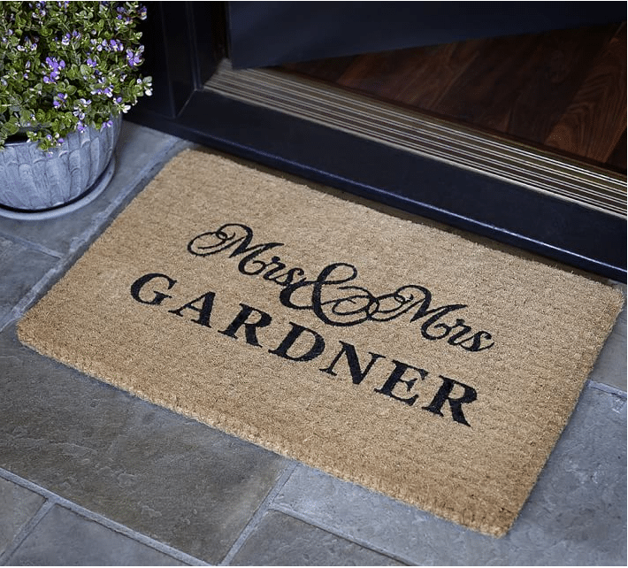 Handwoven and made from 100 percent biodegradable coir, this customizable welcome mat from Pottery Barn is perfect for a couple moving into their first home.