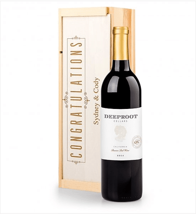 Gift Tree offers a choice of three premium wines presented in a sturdy ‘Congratulations’ wine crate you can engrave with the couple’s name or wedding date.
