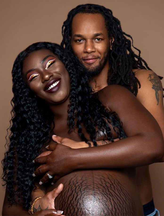 Throughout her pregnancy, Abiola developed deep stretch marks that covered the entirety of her growing belly. The marks made her so uncomfortable, she says she delayed her maternity shoot until she was 38 weeks pregnant. Abiola says that after being dissatisfied with the heavily edited versions of her photos, she decided to confront her fears head-on and show her belly in its true form.