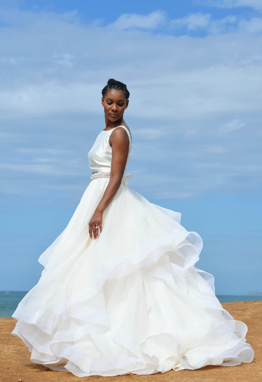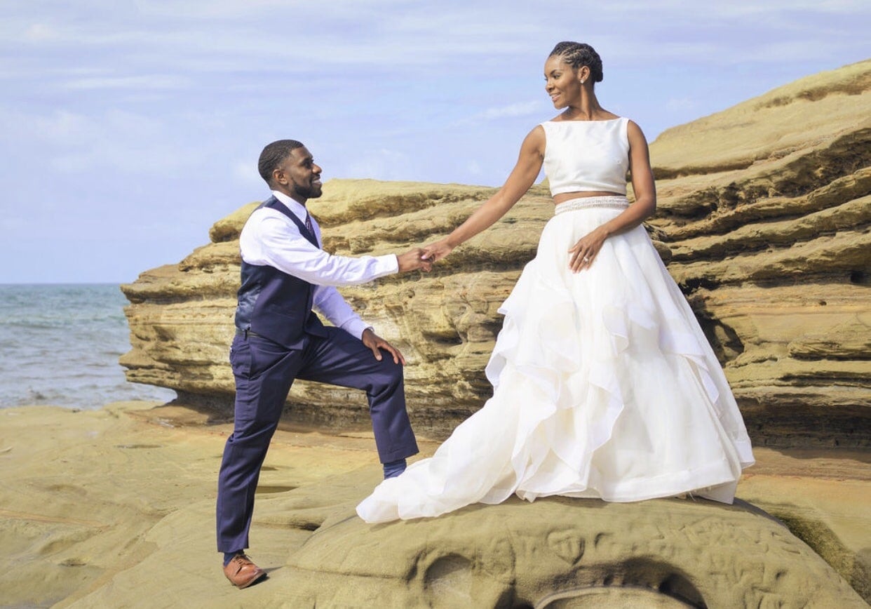 “Having already had our son and relocated several states away from family and friends, we knew that a traditional wedding wouldn’t fit the bill,” Rayna tells ESSENCE. “So without telling anyone, my (now) husband and I secured plane tickets and a villa to fit our family and both of our mothers for a secret elopement.”