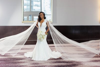 The bride’s gown came from Winnie Couture in Atlanta, but she got creative when it came to adding extra oomph to her look.