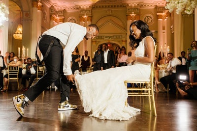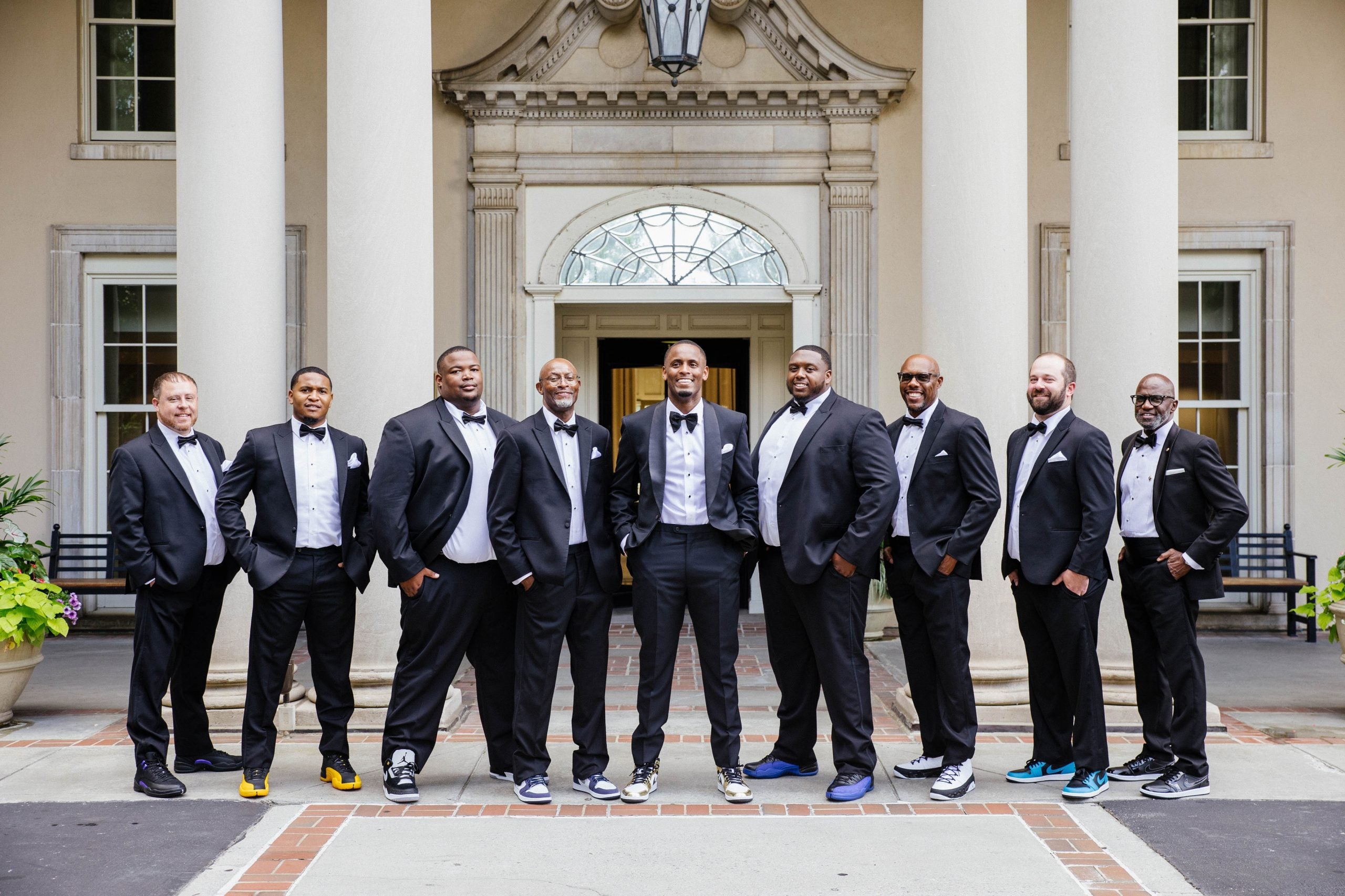 …for photos and at the reception that is! A sneaker enthusiast whose collection of more than 100 shoes has always inspired awe from his friends, Torrey got all of his favorite guys a pair of Jordans, each one tailored to each man’s style, as a gift to say thank you on the big day.
