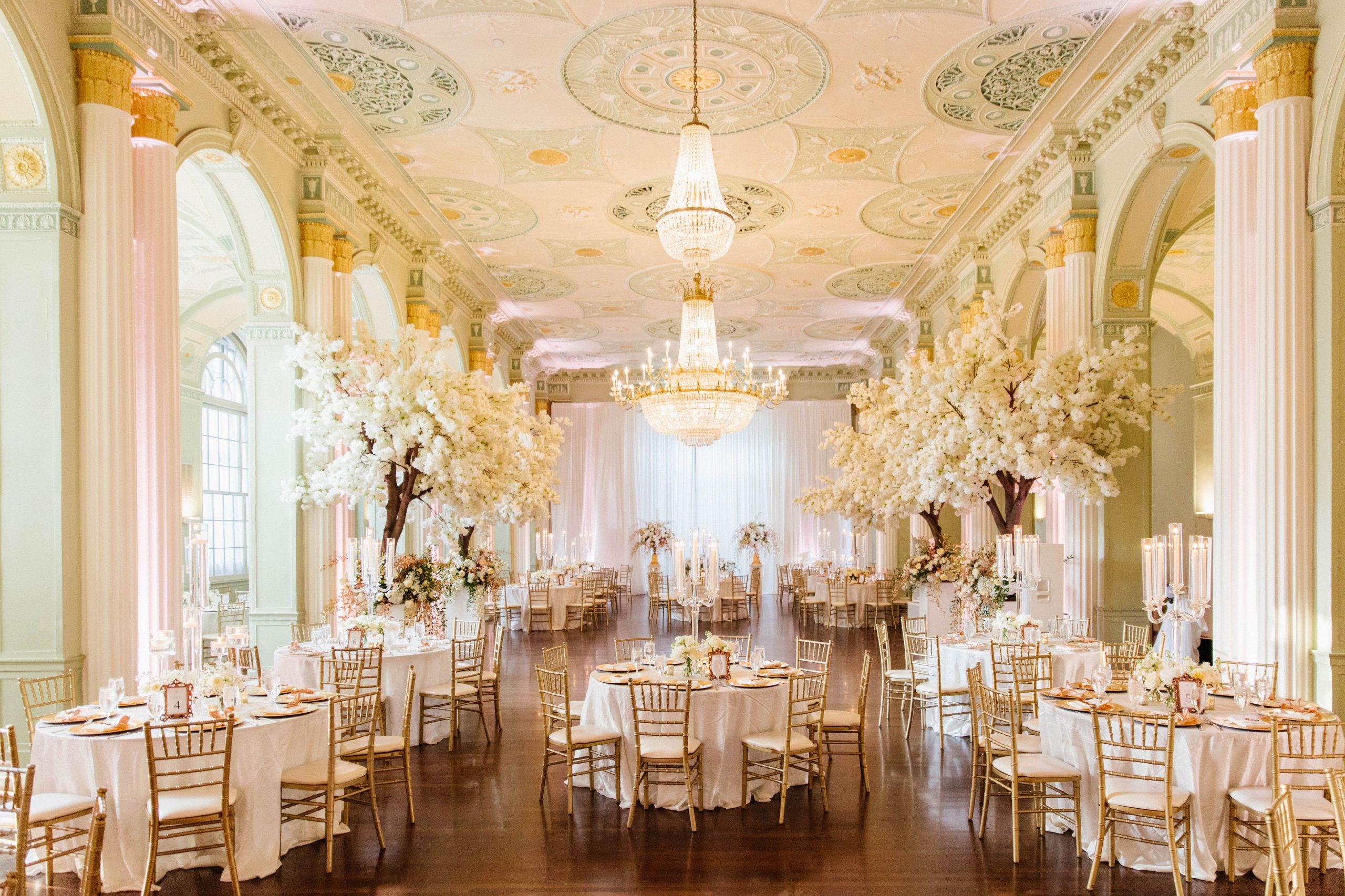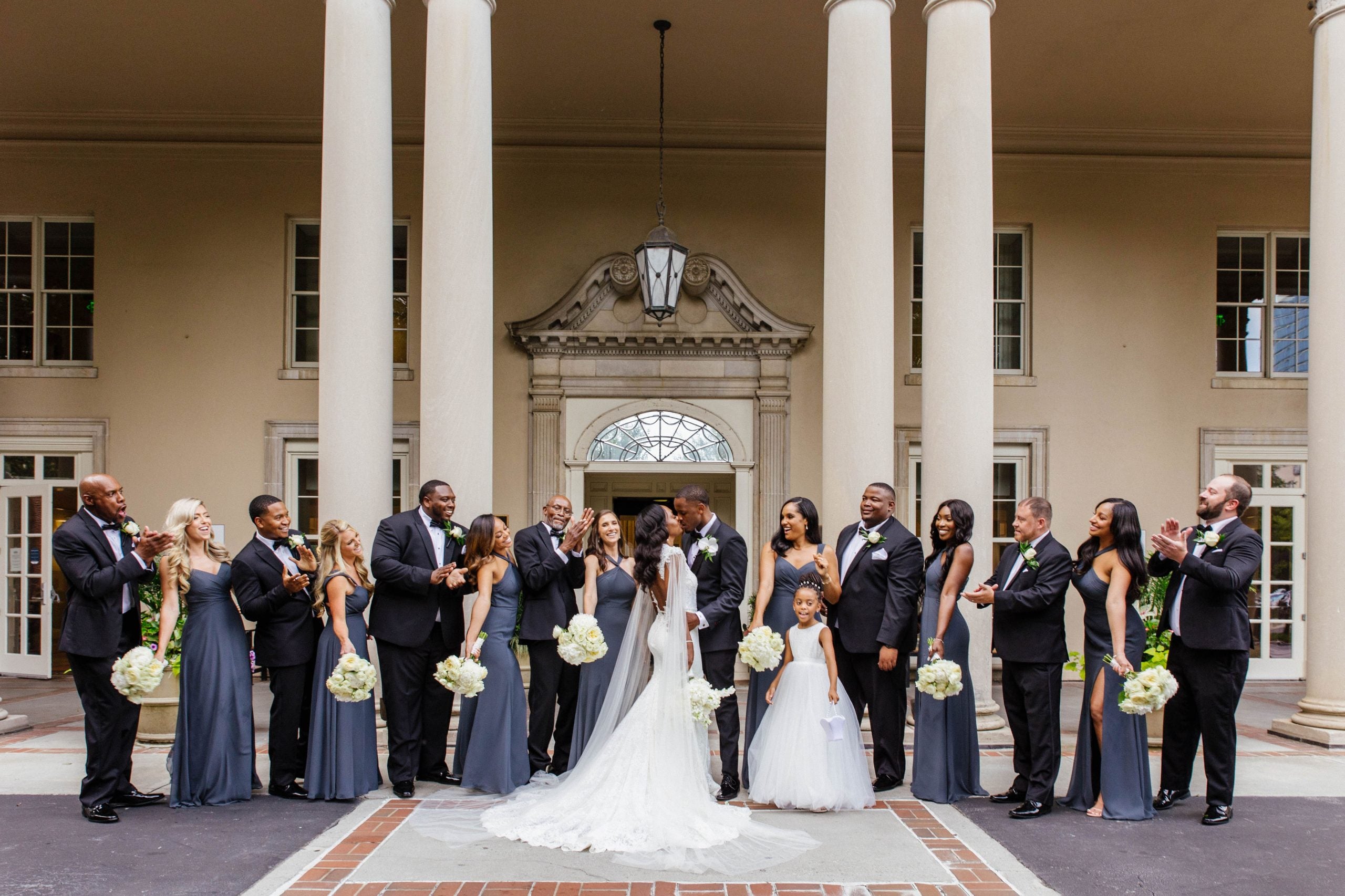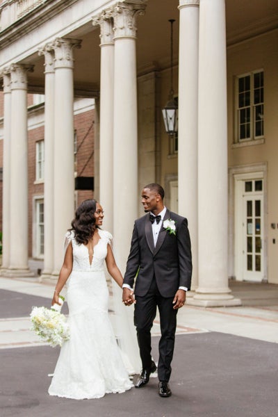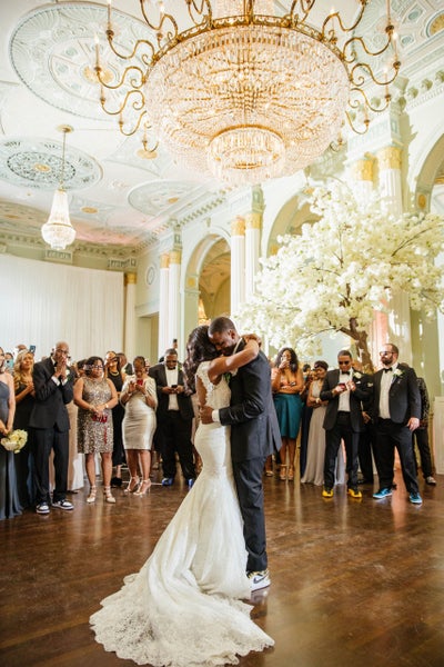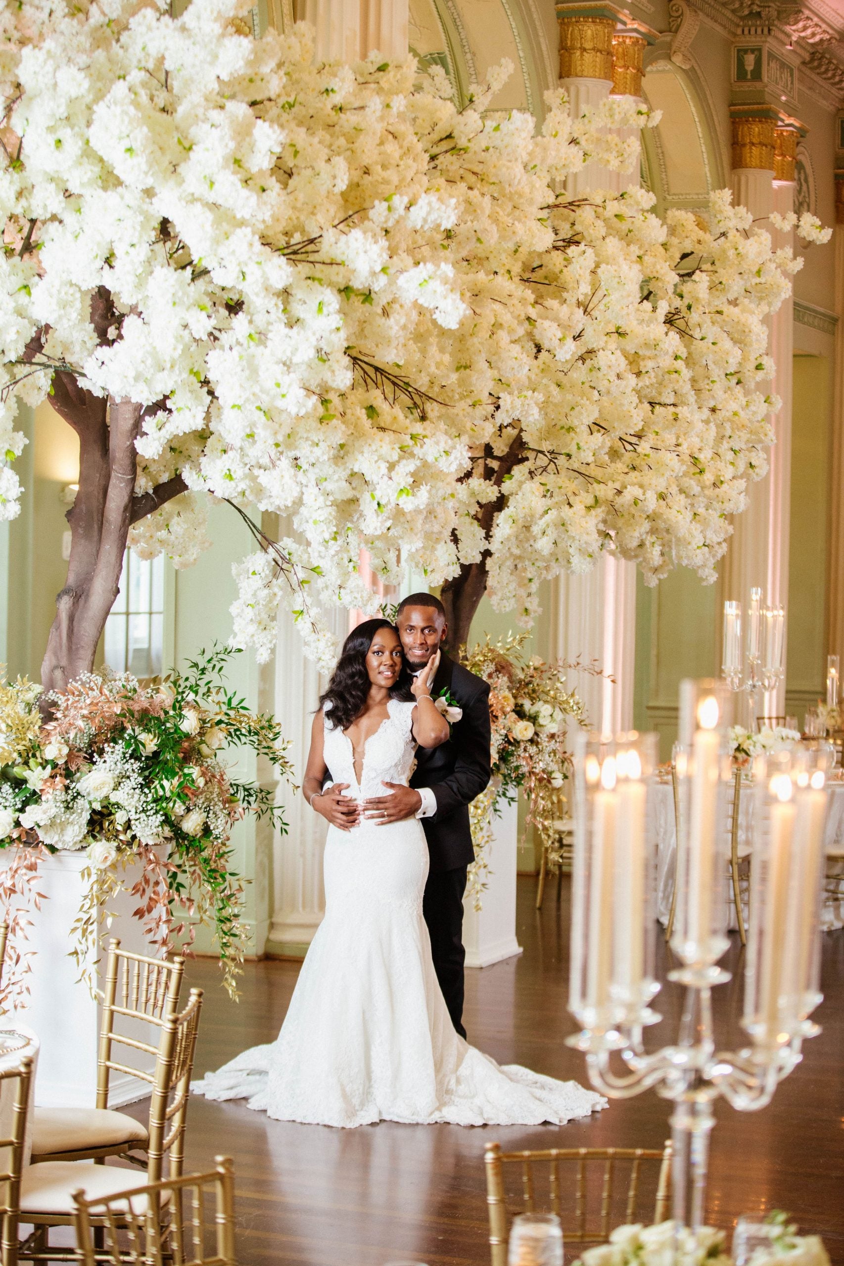 With both of their families mostly in Georgia, an Atlanta wedding was best for the couple. “The Biltmore was in a great location and it was the chandeliers that did it for me,” Courtney says of what sold them on the space. They enlisted planner Shatila Davis and designer Andy Beach to bring their vision to life. While she initially wanted to go with neutral colors, Torrey’s recommendation of copper, bronze and gold accents ended up being a winner. “You usually don’t hear grooms speak up much about decor, but I’m so thankful he threw in his two cents!”