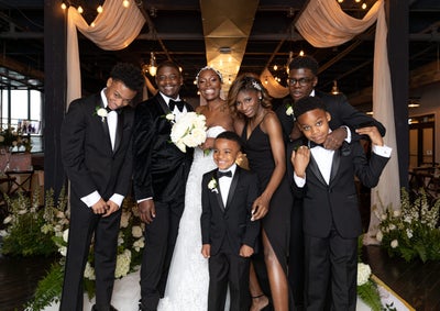 “We are a blended family. My kids are the three boys, David, Luke and Benjamin. The older boy and girl are his two kids, Kristie and Emmanuel. We wanted it to be just about our family. So they were our wedding party.”