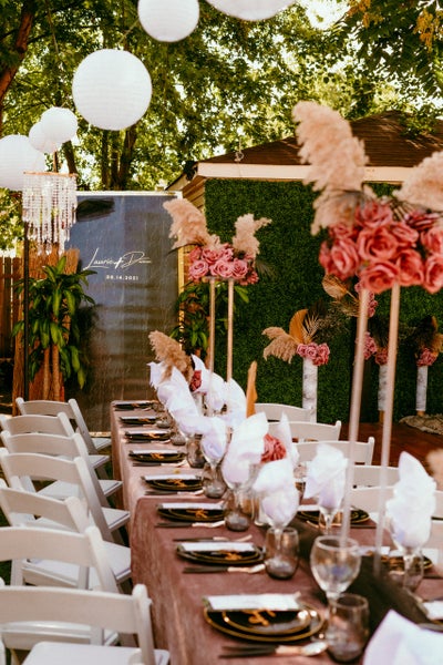 As beautiful as the progression of those years were, planning the wedding would come with great stress and even bigger roadblocks. The couple was initially set to wed in Florida, but when the pandemic hit in 2020, they had to postpone their nuptials and go back to the drawing board. Despite the planning struggles, their situation gave them the chance to get creative and think outside the box when it came to how to say “I do.” They decided to get married in a place already with filled with a lot of love: at home, in their backyard.
