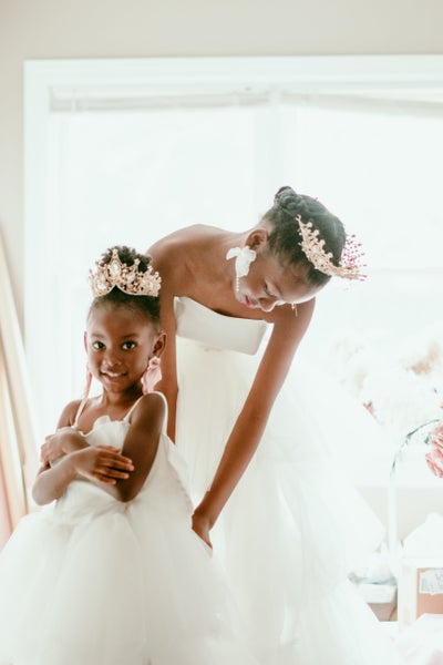 The couple’s daughters, Journe and Makemba, are photographed getting ready together.