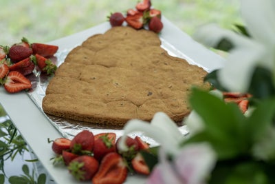 The couple had two cakes for the reception. “Randall’s mom made her famous chocolate cake, and my sister’s godfather made my favorite cookie cake I had at every birthday party growing up,” Rayna says.