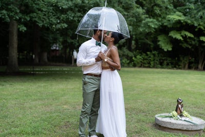 “We decided to have a small ceremony with just immediate family in Rayna’s parents’ backyard in Virginia,” Randall says. “We chose that venue because it was spacious and matched our plans, but most importantly, it was free.”