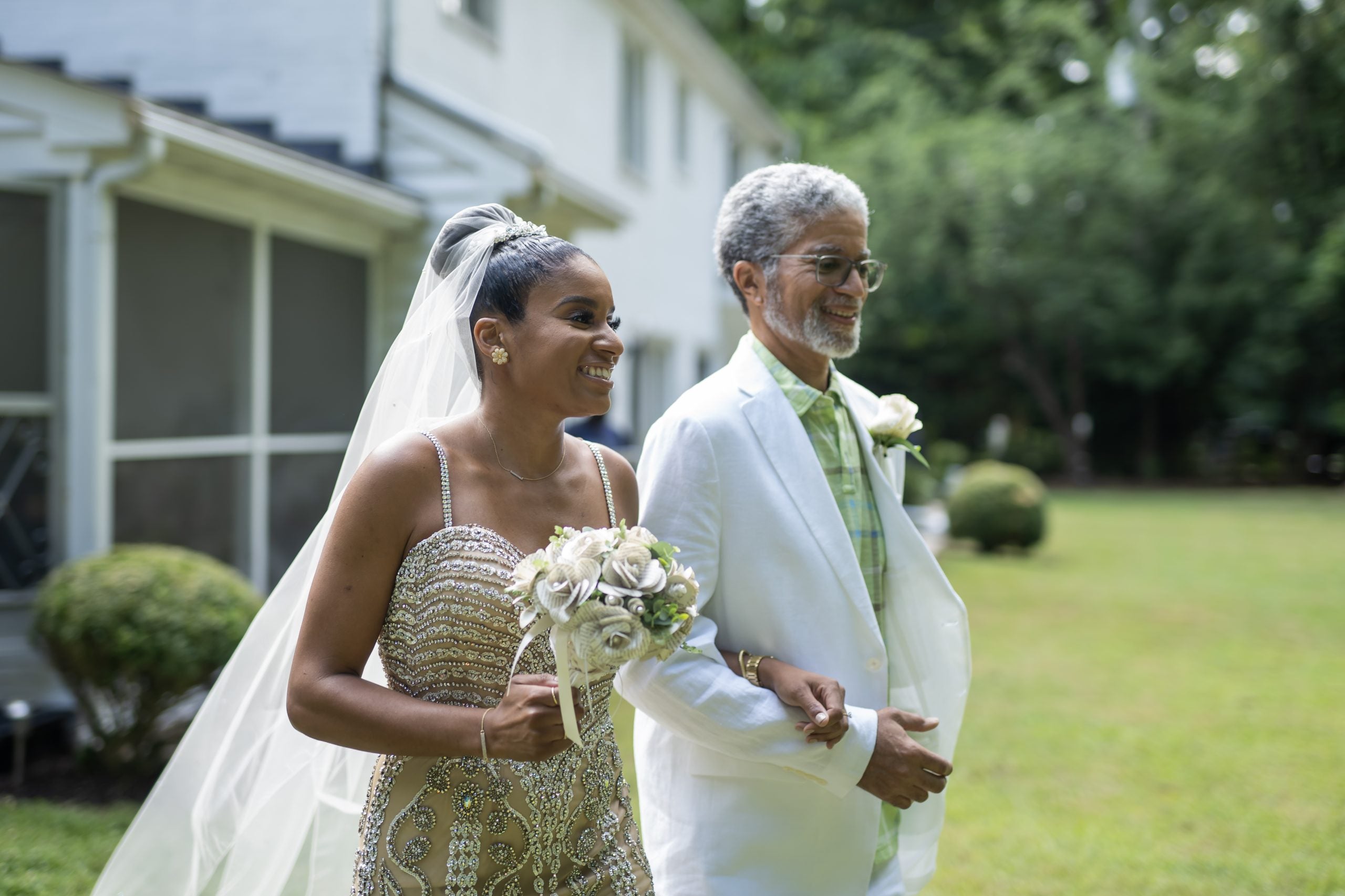 Rayna marched down the aisle in her parents’ spacious backyard with help from the first man she ever loved — her dad.