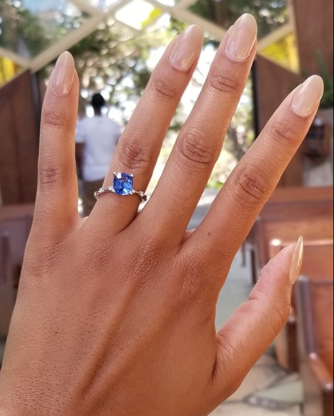 Kelechi joyfully showed off her engagement ring while confirming she nicknamed the sapphire stone “Marina.”